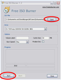 1. .iso-Datei und das Programm Free ISO Burner hier herunterladen